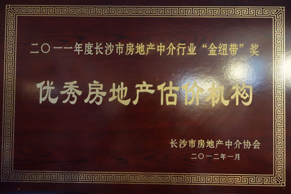 2011年度長(zhǎng)沙市房地產(chǎn)中介行業(yè)“金紐帶”獎(jiǎng)和“優(yōu)秀房地產(chǎn)估價(jià)機(jī)構(gòu)”