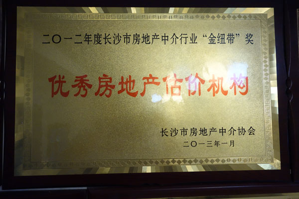 2012年度長沙市房地產(chǎn)中介行業(yè)“金紐帶”獎(jiǎng)和“優(yōu)秀房地產(chǎn)估價(jià)機(jī)構(gòu)”