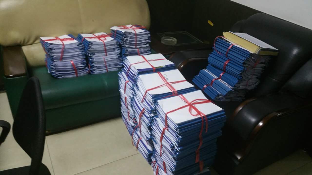 從4月始,我公司公司全力以赴,做好長沙市雅塘村棚改項目房屋征收評估工作,現(xiàn)已基本完成初評工作。為做好1200余戶共計4000份評估報告書,公司抽調全體人員,輪流3-4天,完成所有報告的打印、裝訂、蓋章、簽字、校核、打包等相關工作。