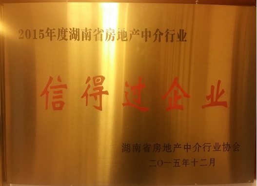 2015年12月獲湖南省房地產(chǎn)中介行業(yè)協(xié)會頒發(fā)的2015年度湖南省房地產(chǎn)中介企業(yè)“信得過企業(yè)”。