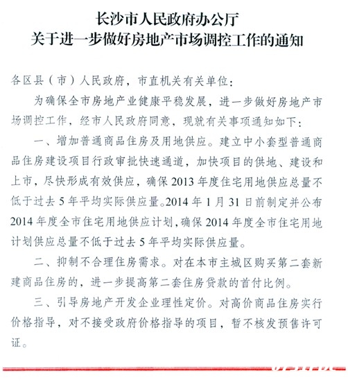 長沙市政府:關(guān)于進(jìn)一步做好房地產(chǎn)市場調(diào)控工作的通知