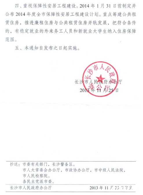 四、重視保障性安居工程建設(shè)。2014年1月31日前制定并公布2014年度全市保障性安居工程建設(shè)計(jì)劃。重點(diǎn)籌建公共租賃住房,推進(jìn)廉租住房與公共租賃住房并軌發(fā)展,把符合條件的,有穩(wěn)定就業(yè)的外來務(wù)工人員和新就業(yè)大學(xué)生納入住房保障范圍。