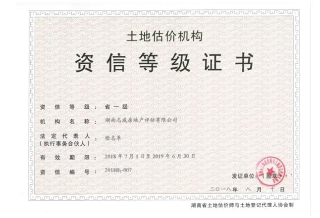 湖南省土地估價(jià)師與土地登記代理人協(xié)會(huì)2018年度省一級(jí)資信機(jī)構(gòu)